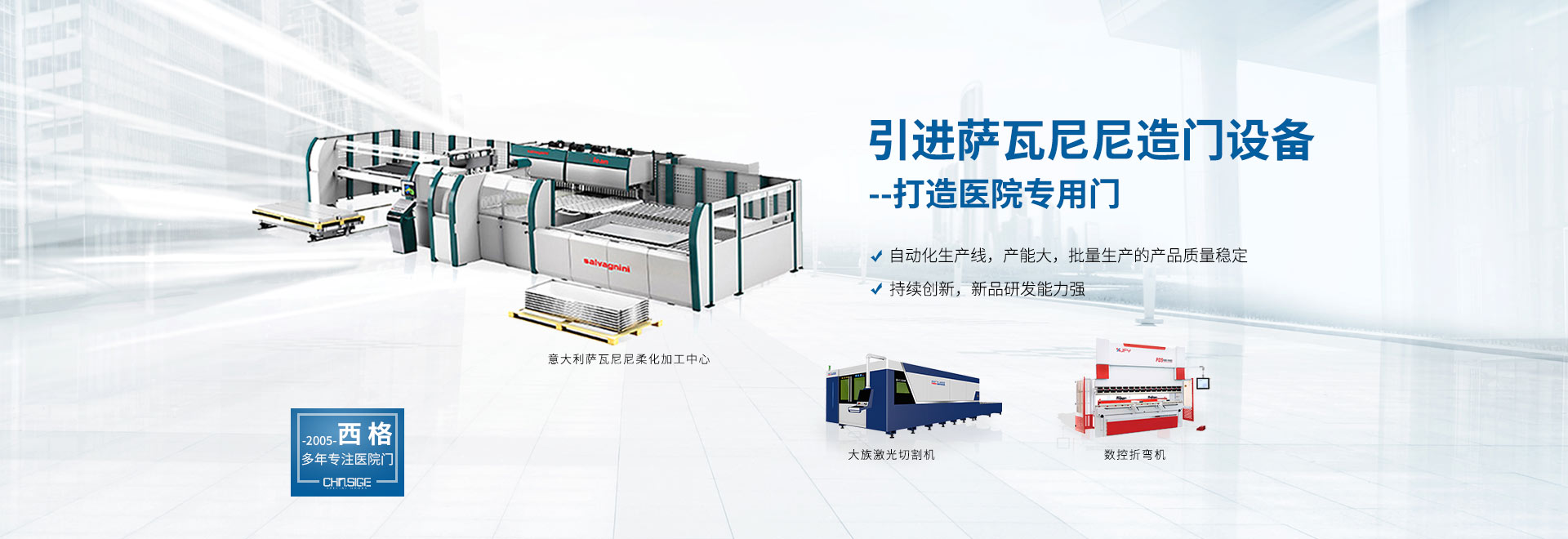 西格,國內大型醫院門生產基地,斥巨資建立 HPL和鋼質兩大材質的標準化醫院門生產線, 囊括行業主流醫院門品類,材質齊全,選購無憂。